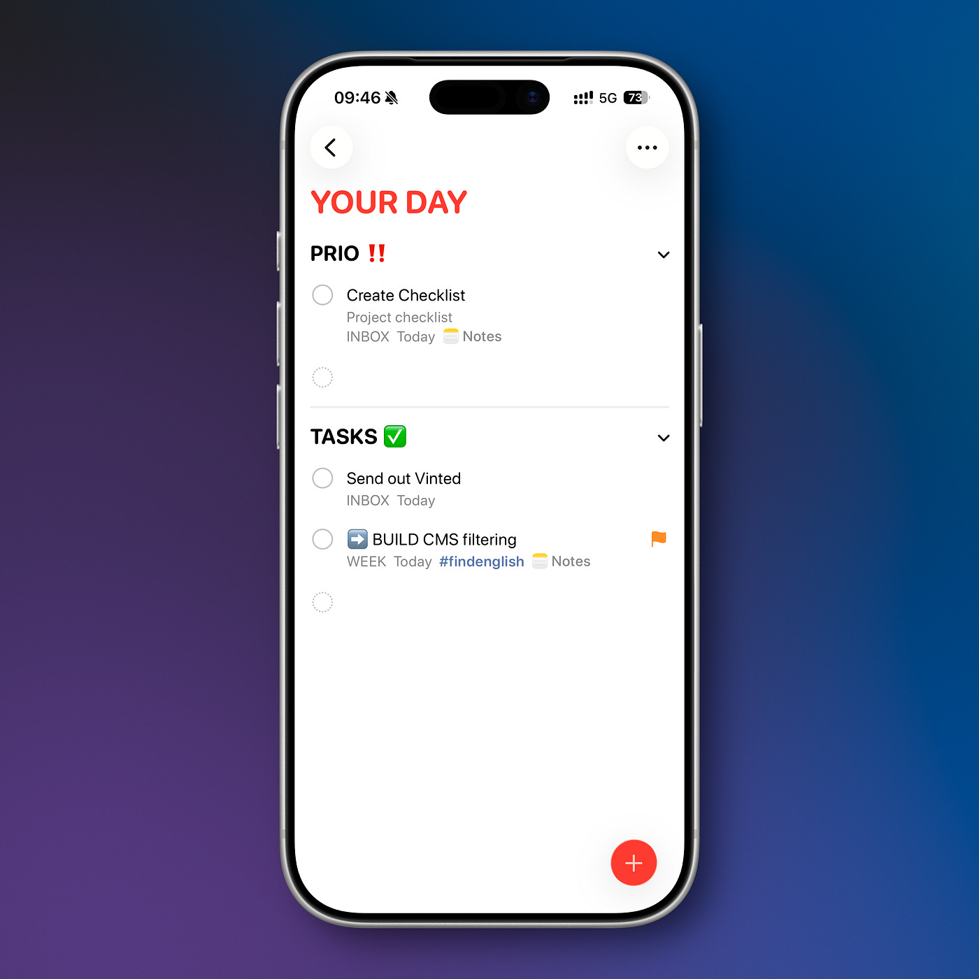 When I’m working on a project, the full context sits in a note. But the task itself stays simple.